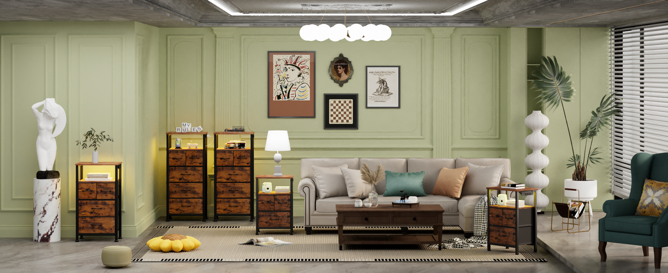Furnulem 4/5 Drawer Nightstand with Charging Station