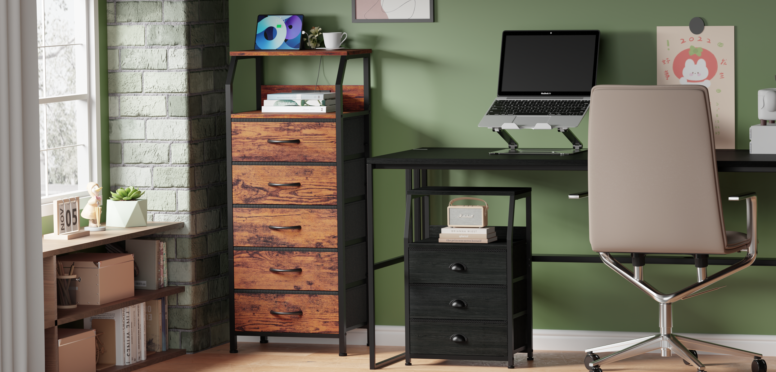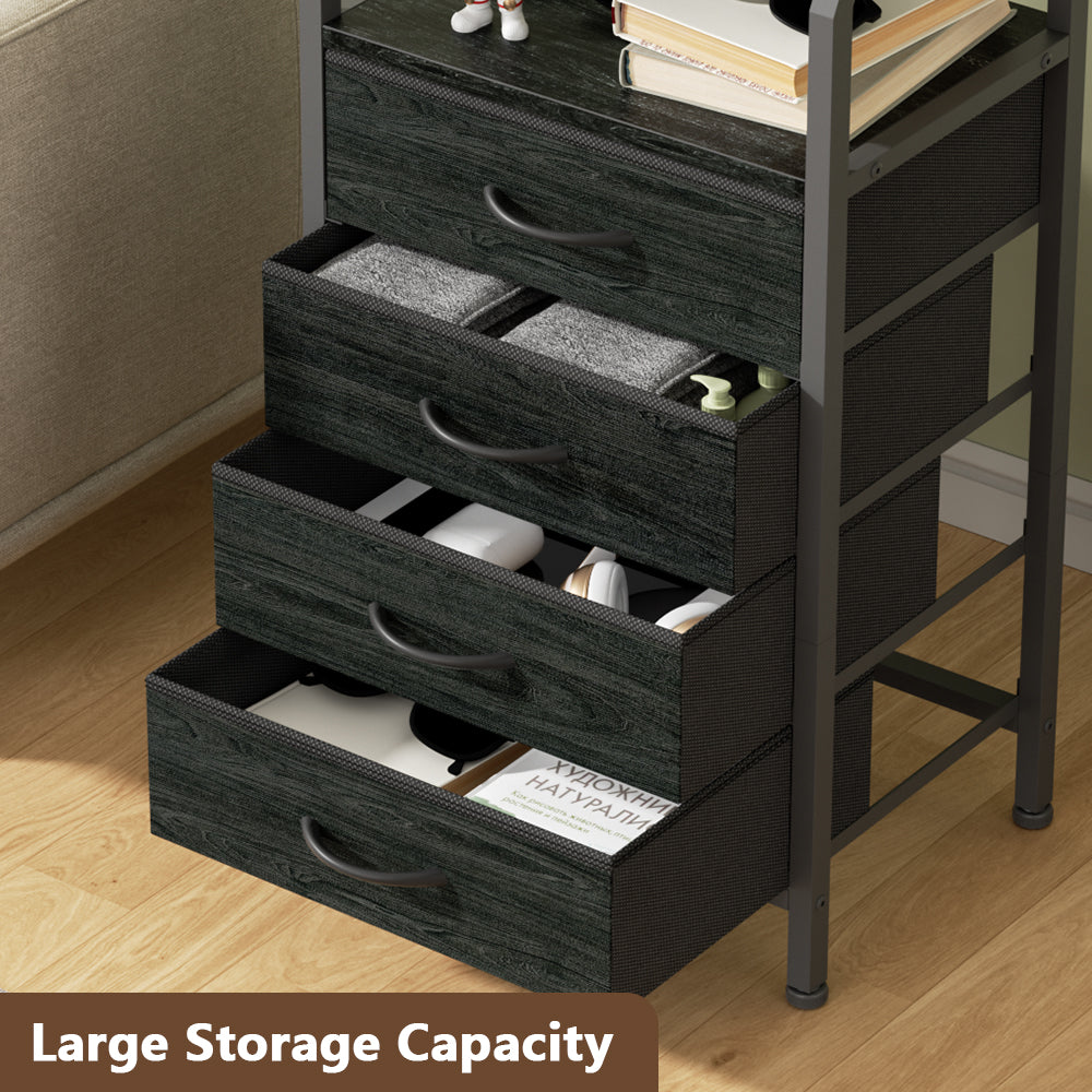 The dresser can choose large storage drawers made of 3 layers/ 4 layers/ 5 layers of thick fabric, which are lightweight and durable. They are the perfect combination of practicality and beauty. 2-layer wooden open shelves are suitable for organizing small items.