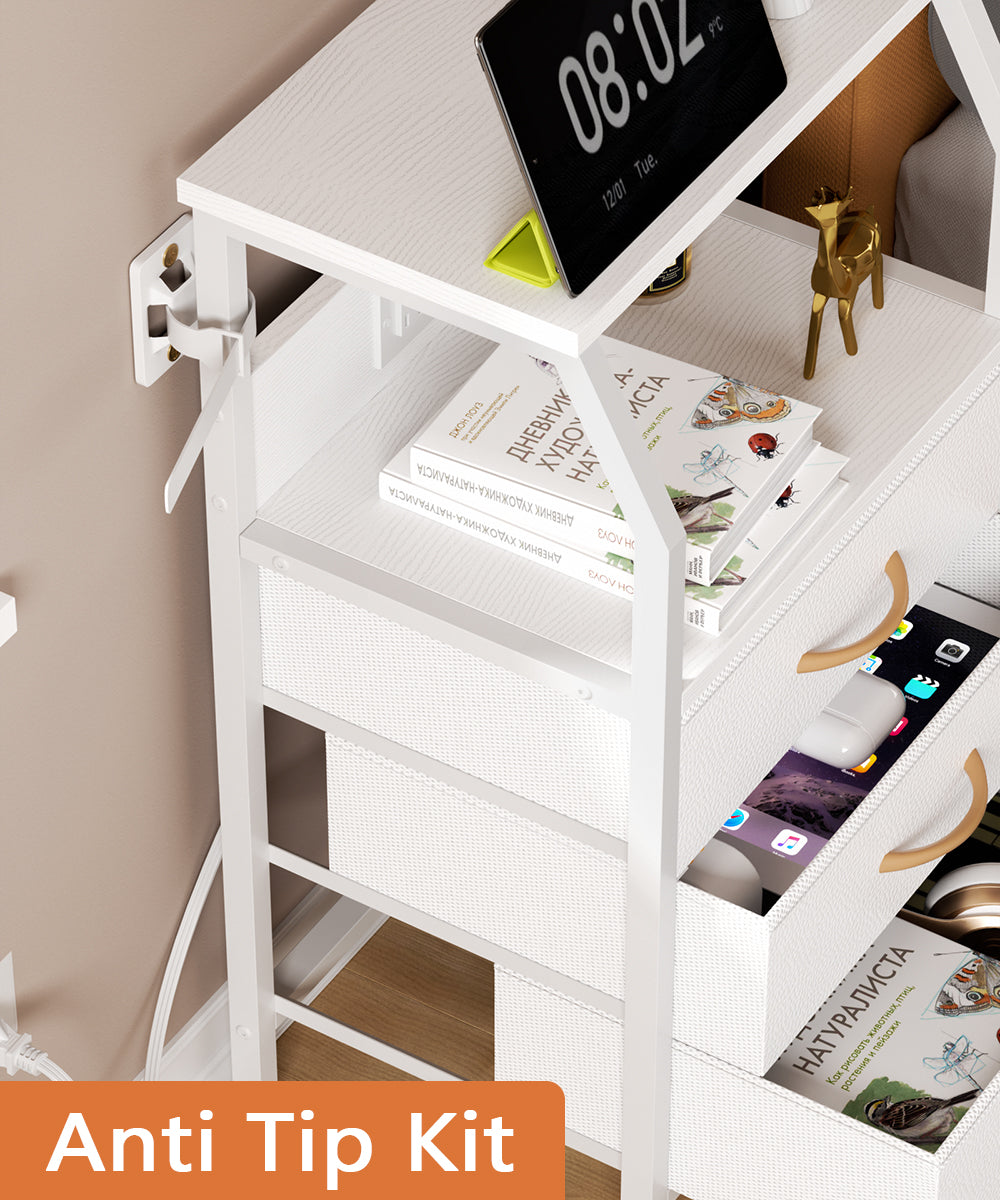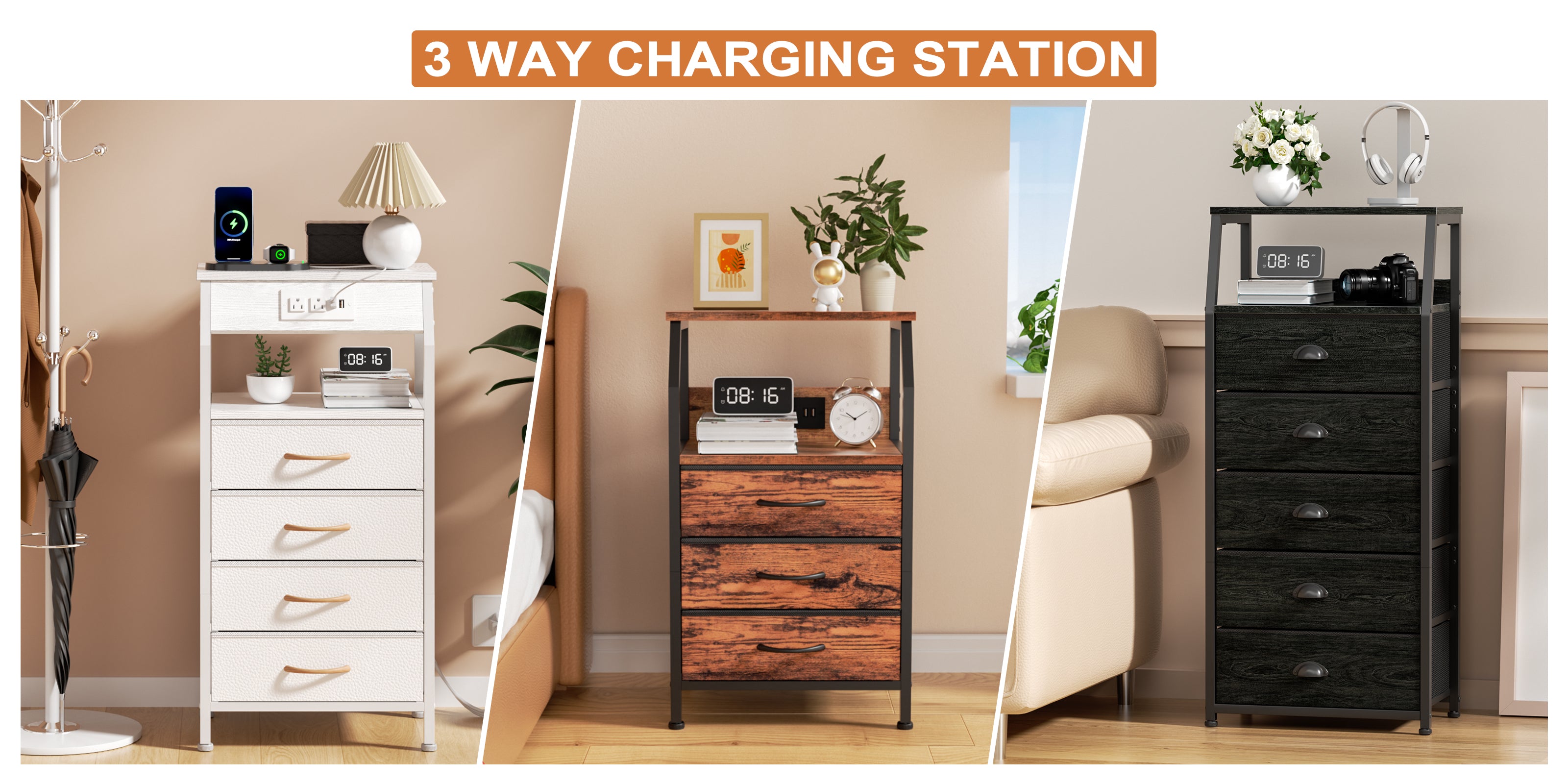 Equipped with 2 USB ports 2 AC socketsabd a 6.5-foot extension cord, convenient and worry-free charging. This nightstand allows you to easily charge your mobile phone, iPad, speakers, lights or other devices in the bedroom or living room.