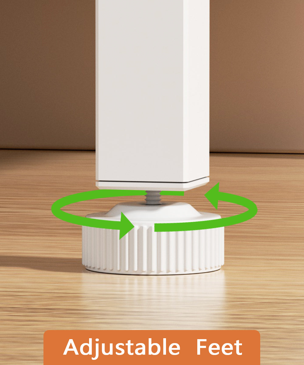 Adopting upgraded particle board material, it is safe and environmentally friendly, exquisite workmanship and durable. 4 adjustable feet and anti-dumping device guarantee the stability and safety of the product.