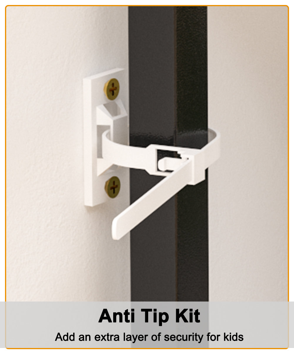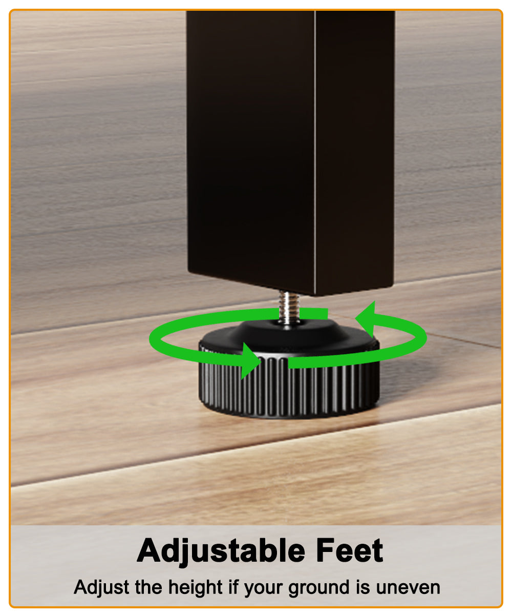 This tall shelf is composed of wear-resistant wooden frames and a hard steel frame, made of high-quality materials and durable. Equipped with an additional anti-tip device to secure the bookshelf and prevent the tall shelf from tipping over. Adjustable feet for balance on uneven surfaces.