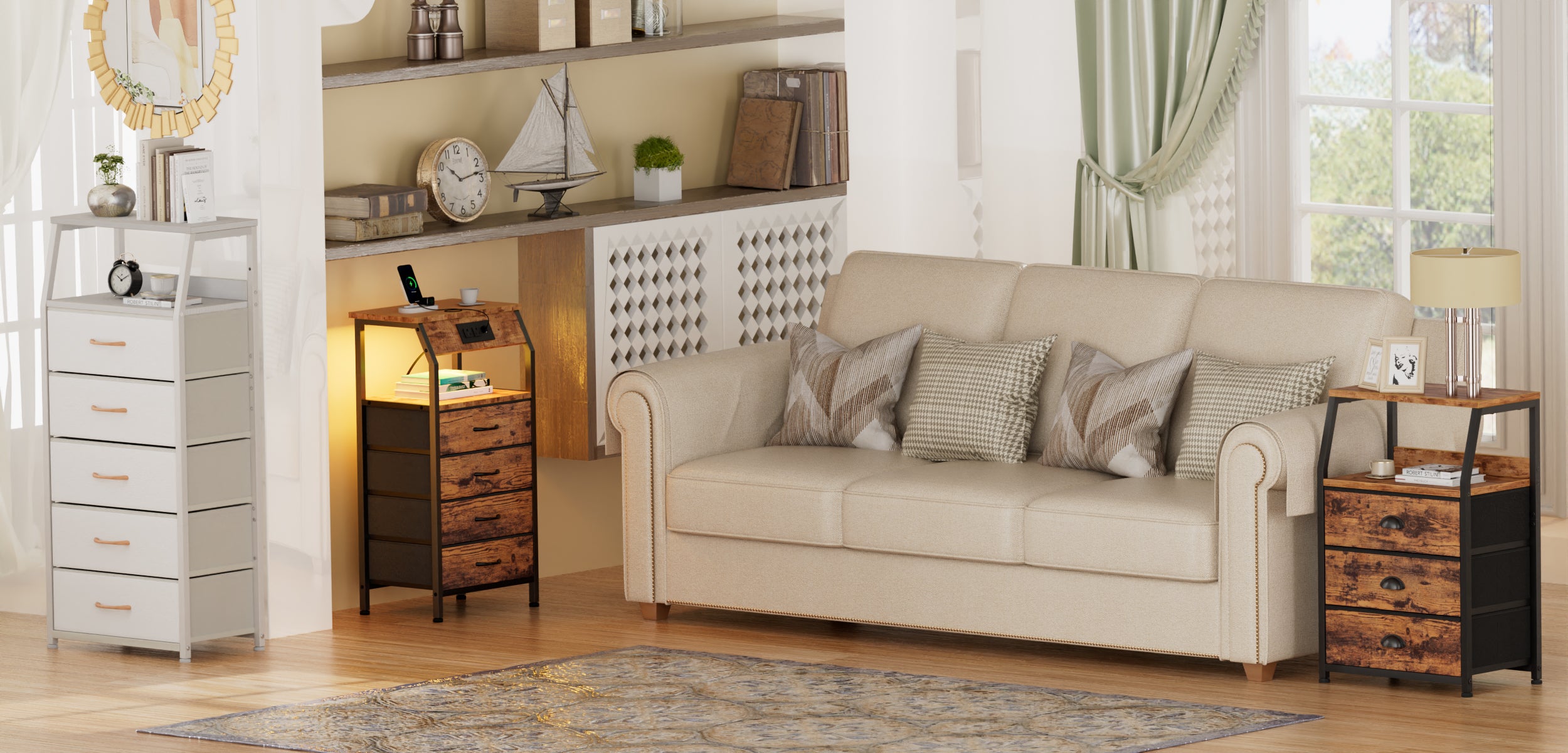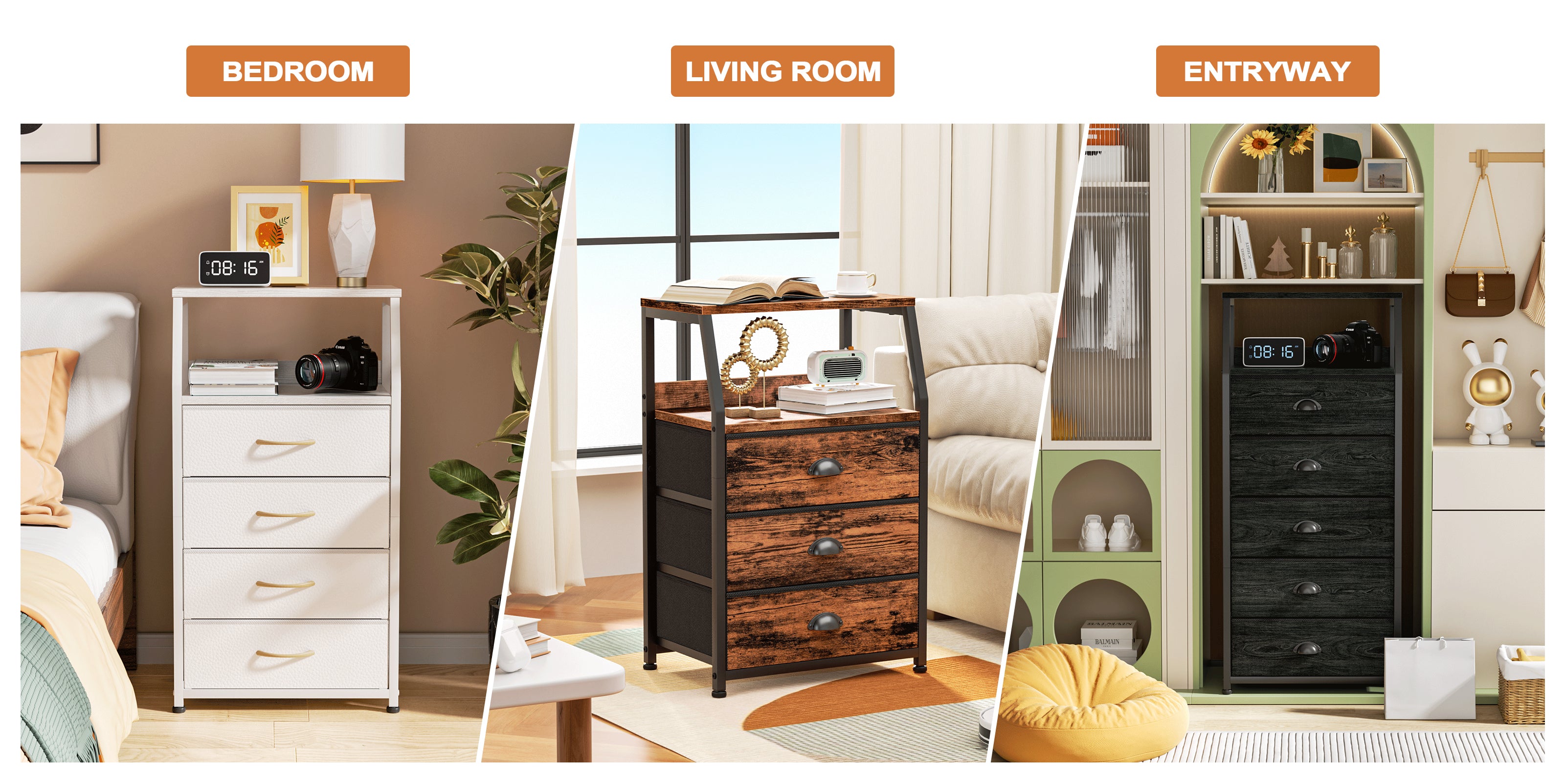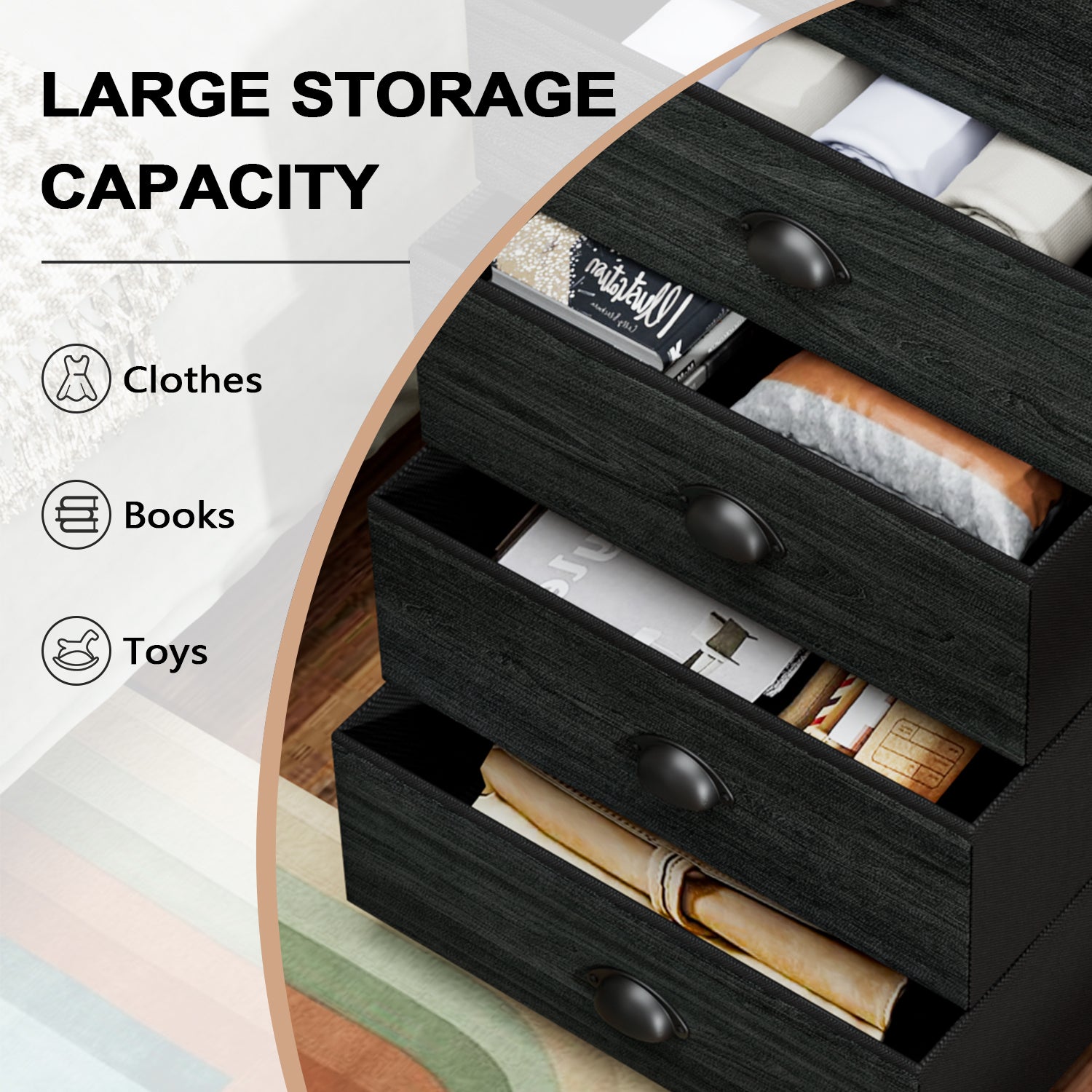 3 different capacity foldable drawers provide you with ample storage space, and each fabric drawer provides large storage space, keep your bedroom neat and organized. The drawer is made of linen fabric, which is lightweight and durable, will not pinch your hands, and is also safe for children to use.