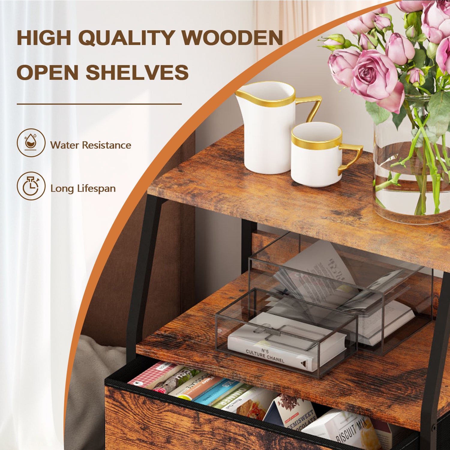The nightstand equipped with double open shelves, and the wooden top is sturdy and wear-resistant, which can display vases, photo frames or other daily necessities and keep them within reach.