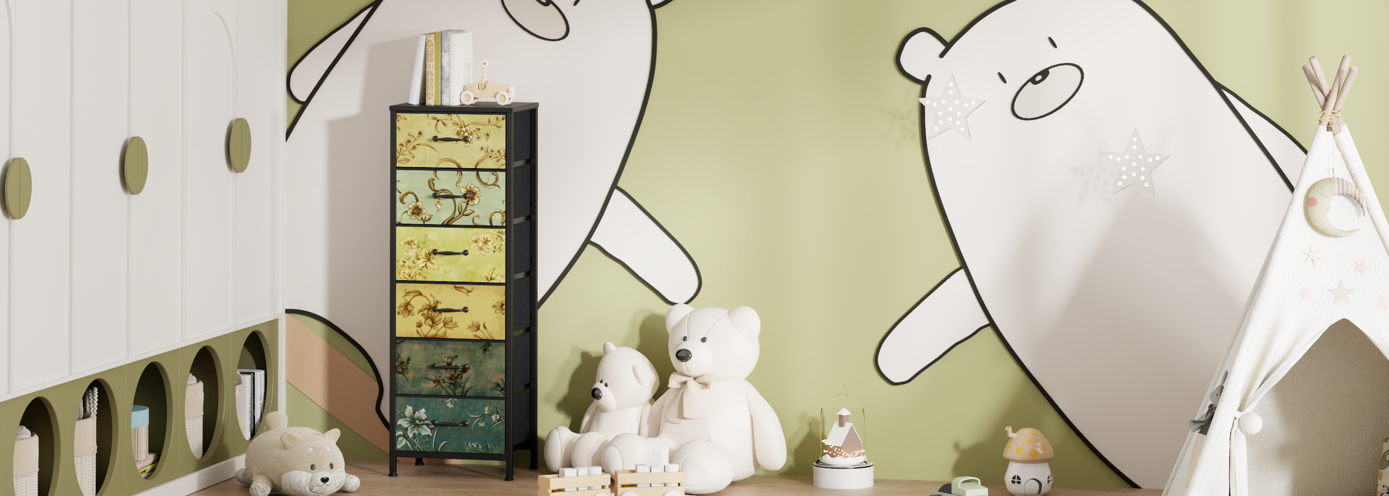 Includes multi foldable fabric drawers (14.2" L x 11.1" W x 7.1" H each), providing ample storage for clothes, toys, socks, blankets, and accessories. The drawers are lightweight, durable, and safe for children.