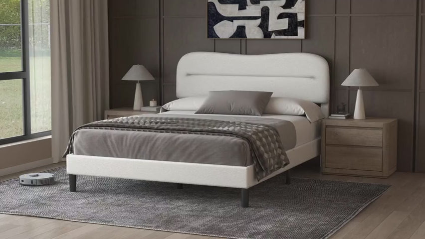 Queen Size Bed Frame with Headboard upholstered Bed Frame Teddy Soft Boucle Fabric Soft Cloud Marshmallow Shape Headboard No Box Spring Needed